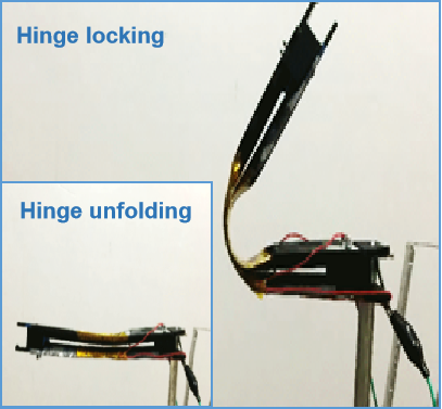 The hinge unfolding mechanism based on intelligent transformation polymer composite material has the function of integrating structural load-bearing and unfolding driving. Both ends are connected to fixed platforms (such as satellites) and driven devices (such as solar panels). |
