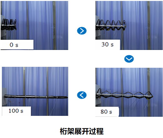 基于智能變形聚合物復合材料的可展開桁架,使用智能變形聚合物復合材料結(jié)構(gòu)作為驅(qū)動源,可實現(xiàn)結(jié)構(gòu)承載、自鎖和展開功能。 |